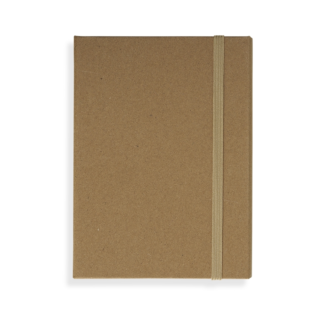 Bloco de anotações em papel kraft pautado em kraft, possui notas autoadesivas, compartimento para guardar anotações, uma régua em material plástico de 12 cm e caneta. Obs.: O bloco possui aproximadamente 70 folhas.