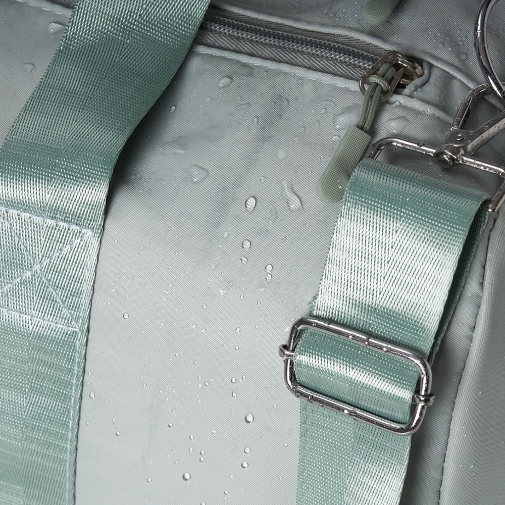 Bolsa esportiva de 35 litros confeccionada em poliéster resistente à água. Contém cinco compartimentos, sendo dois deles especiais: compartimento exclusivo para tênis e um compartimento exclusivo para roupas molhadas. A bolsa possui alças de mãos, alça lateral, alça de ombro removível com regulagem e acesso para encaixar malas de viagem.