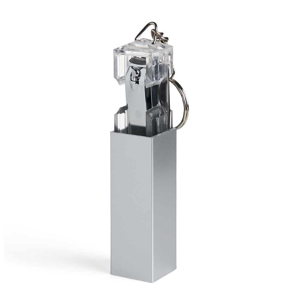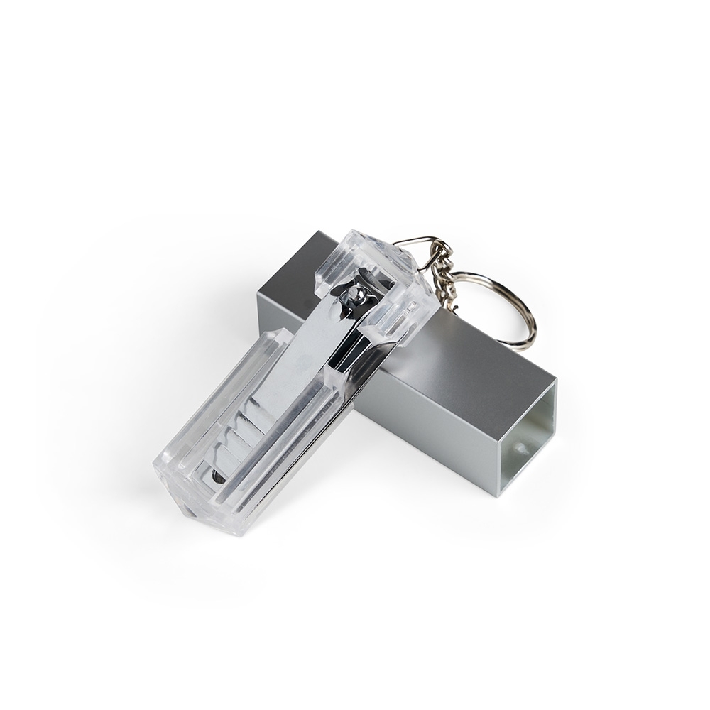 Descrição: Chaveiro kit manicure 4 peças em estojo plástico. Possui lixa, pinça, empurrador de cutícula e cortador de unha preso. Estojo com berço plástico para acomodação das peças.