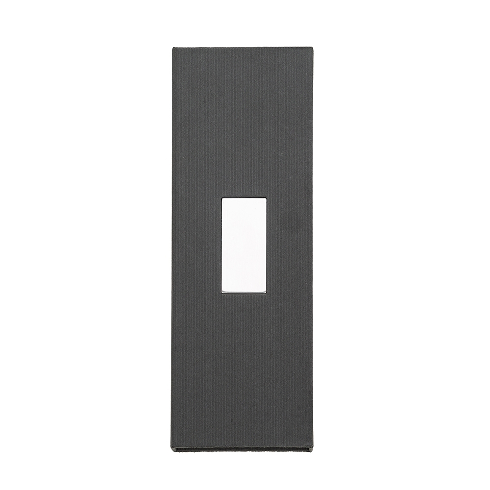 Conjunto caneta e lapiseira em estojo de cartonagem com placa central para personalização. Clip metal e anel central possui: anel fino prata, anel preto fino e um anel maior prata com relevo e acionam por giro. Estojo revestida com espuma na parte interna.