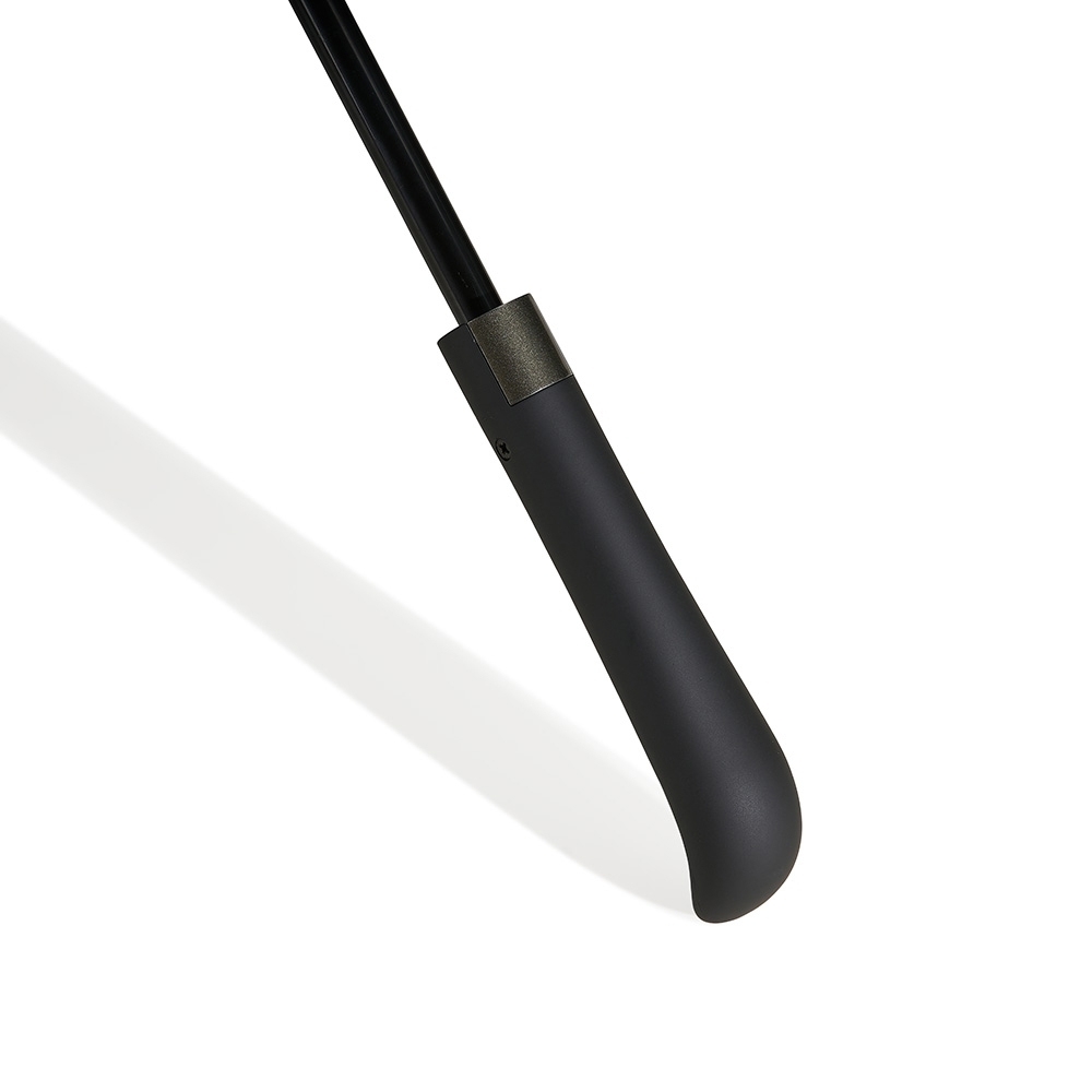 Guarda-chuva de nylon com extensão 360º de tecido para ampliação da área de proteção. Com botão para acionamento, o guarda-chuva contém cabo emborrachado, estrutura metálica, 8 hastes de fibra e fita com velcro para lacre.