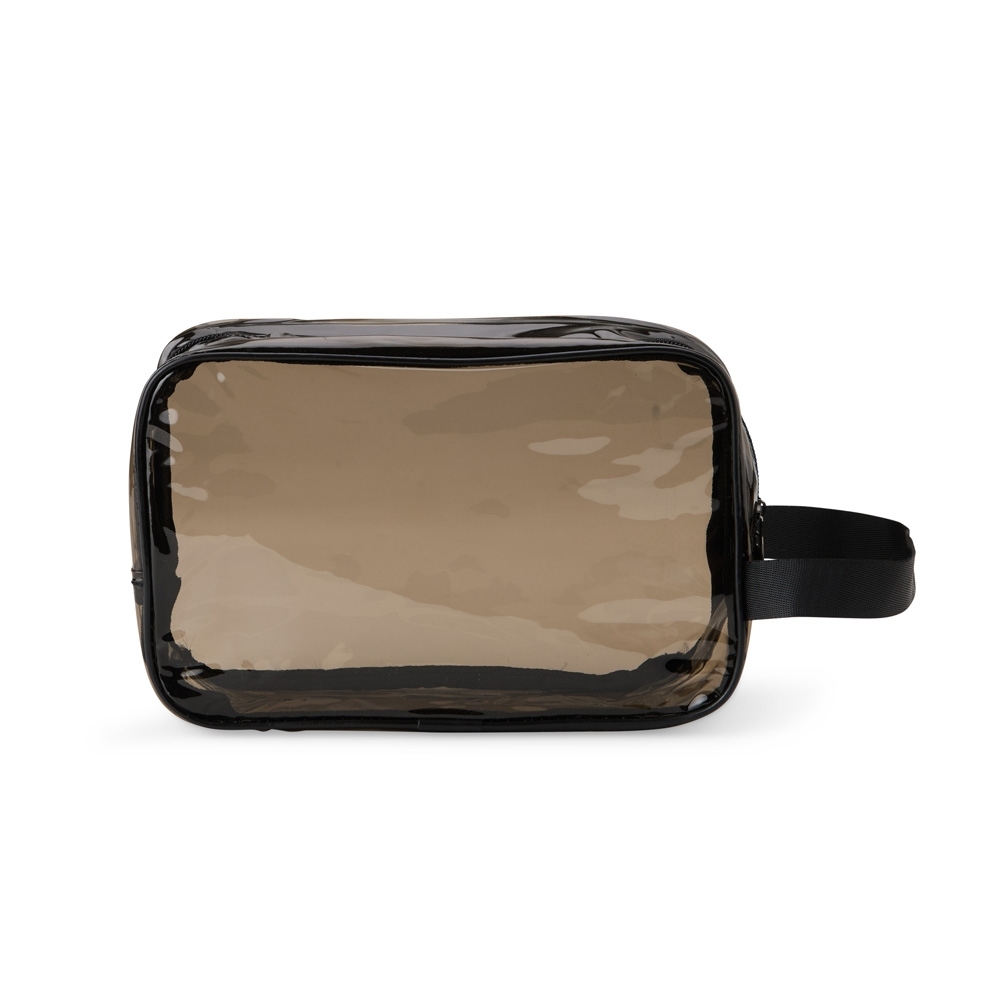 Descrição: Nécessaire plástica transparente com alça de nylon.